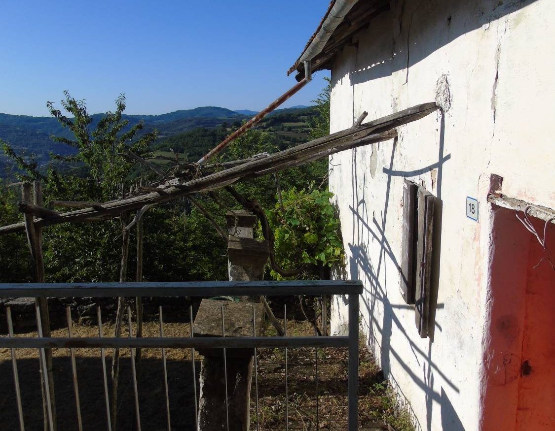 Grande rustico in pietra, intonacato, indipendente, una parte, di mq.310, ancora autentico da ristrutturare ed una parte, di mq.128, con lavori di struttura interna da stabilire, che insieme circondano ad “U” una piccola corte dalla quale si gode uno splendido panorama. Disposto su 2 piani per totali mq.438, è così suddiviso: