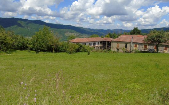 – al piano superiore raggiungibile sia con scala interna che esterna: disimpegno, 2 camere, altra cucina, servizio, balcone, seguono parte ex agricola composta da ripostiglio e ampi 2 fienili;