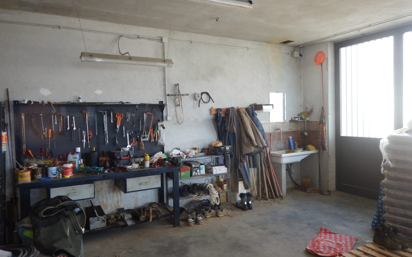 Altro fabbricato indipendente uso deposito di mq. 85 con tre ampi ingressi carrai, tetto con copertura piana pavimentata.