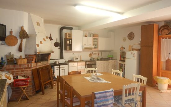 - al piano terra: ampio soggiorno, con caminetto e zona pranzo, cucina abitabile collegati con il portico con uscita sulla corte, disimpegno, bagno e grande locale ad uso taverna con forno a legna;