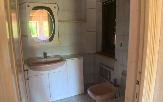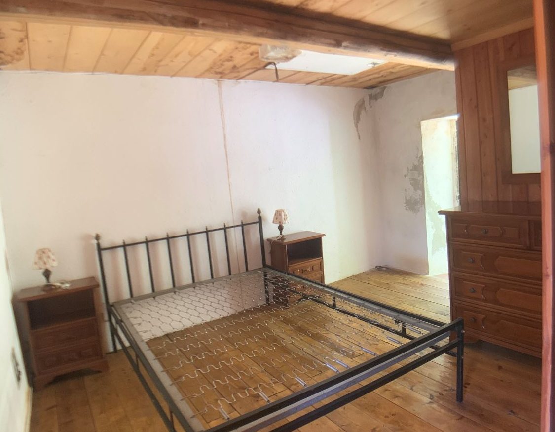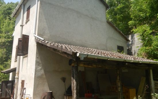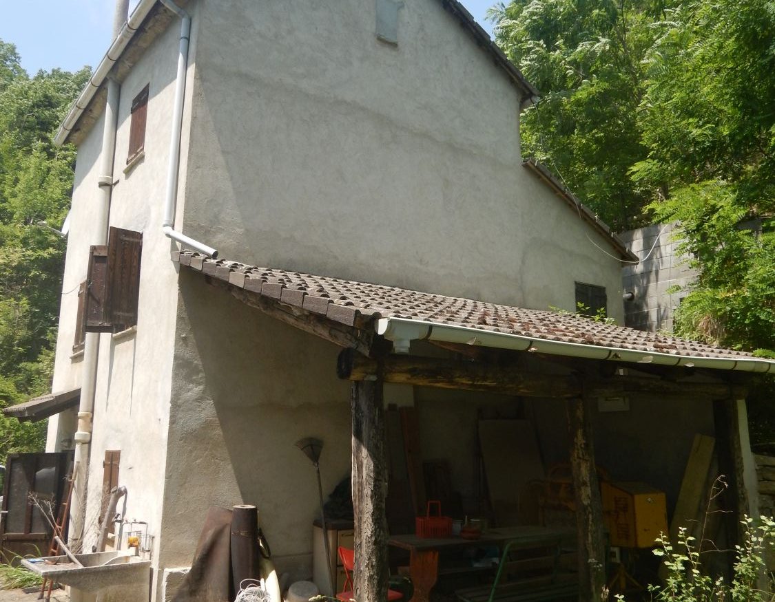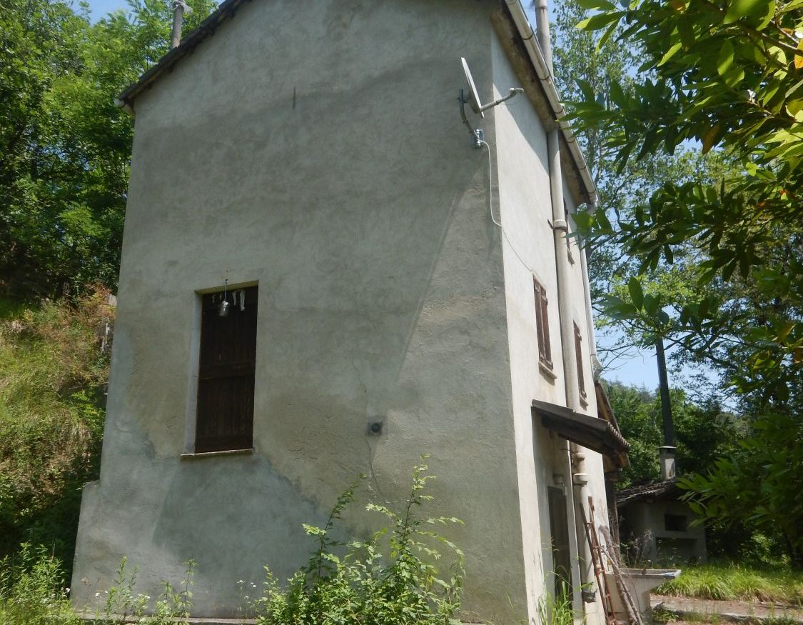 Piano terreno: ingresso, cucina con lavandino in marmo alla genovese e scala in legno per accedere ai piani superiori. All’esterno è presente un porticato laterale aperto di 13 mq.