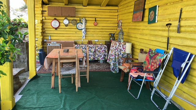 Chalet in legno, indipendente, di mq.100, abitabile, perfettamente coibentato, così suddiviso: ingresso, terrazza verandata, soggiorno con caminetto, cucina, disimpegno, 2 camere, servizio, bagno completo, ripostiglio, porticato aperto con cucina estiva.