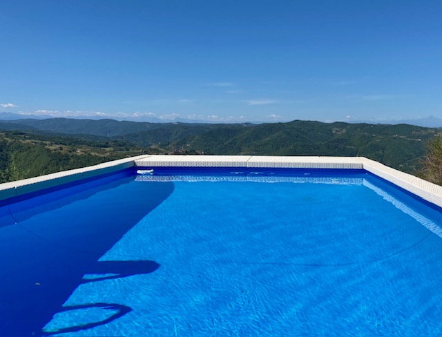 Completa la proprietà una piscina esterna con controcorrente e pompa di calore, una roulotte con wc per gli ospiti.